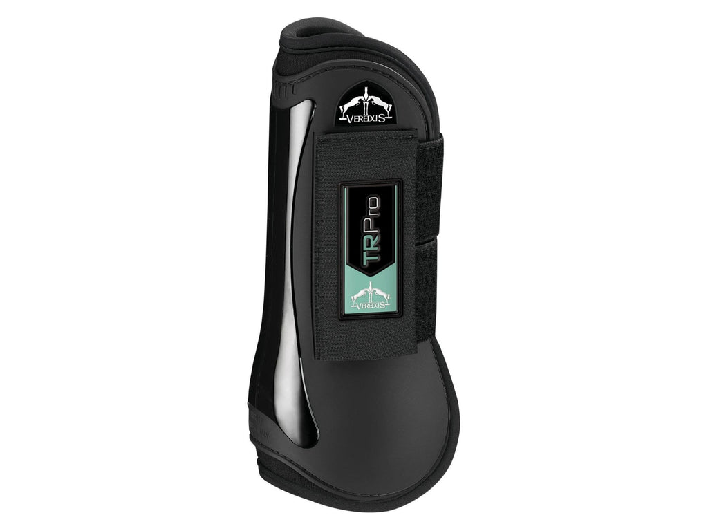 Open front tendon boot in neoprene coupled with Lycra, with strike pad in POLYFLEX (elastic polyurethane) equipped with two elastic straps and double velcro safety fastening.
